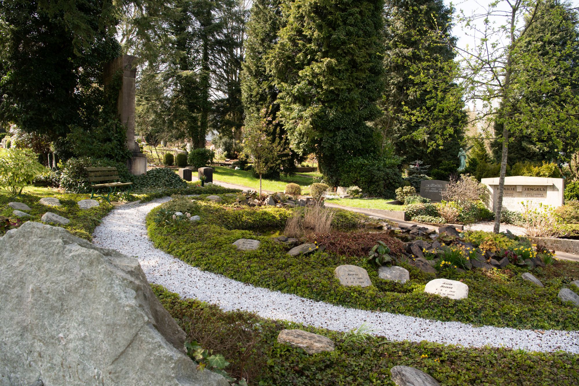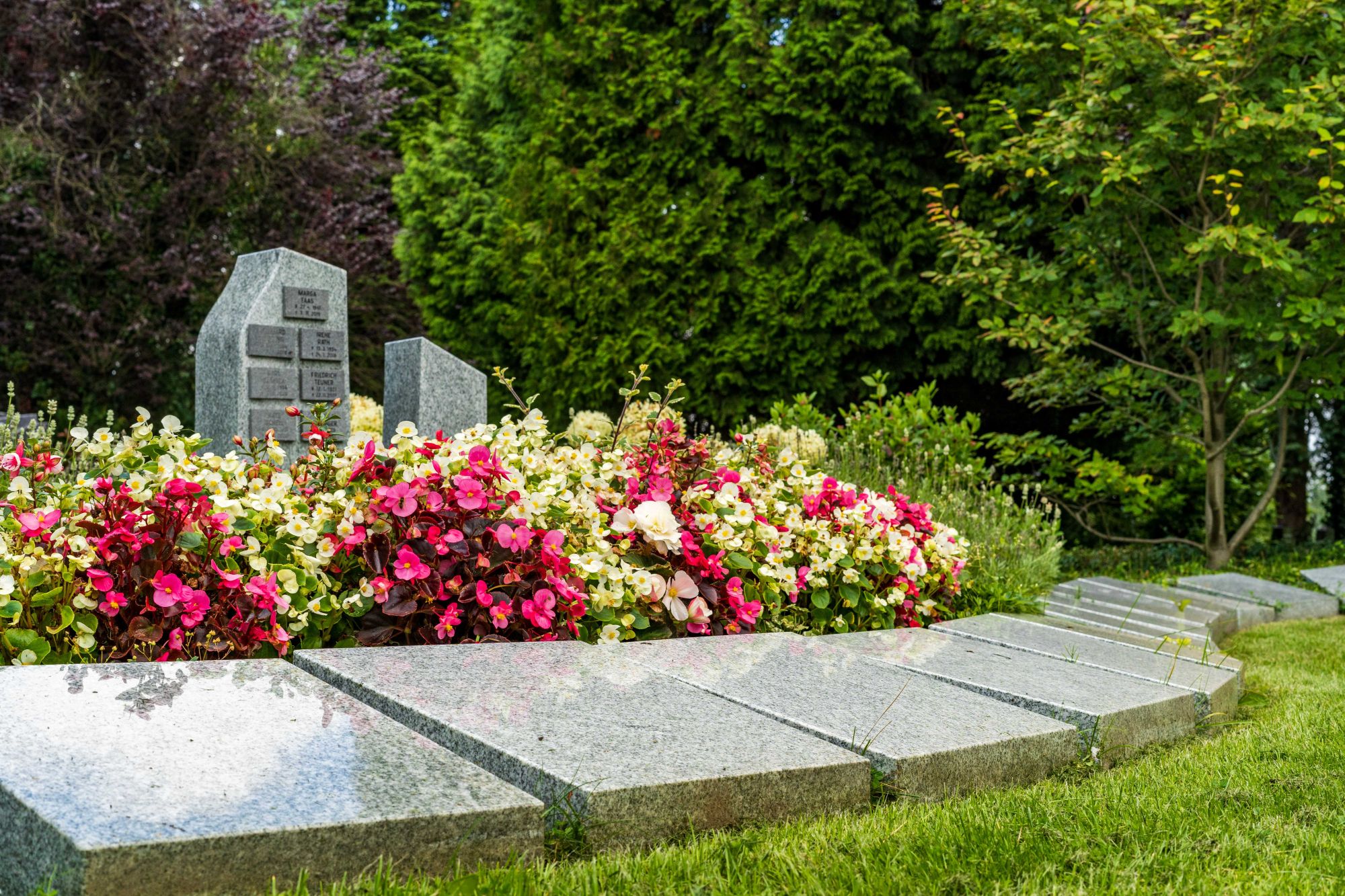 Mit unserem Memoriam-Garten auf dem evangelischen Stadtfriedhof Remscheid haben wir, das Team von Blumen Wörner, ein kleines blühendes Paradies geschaffen. Eine grüne Oase, in der Grabstätten und Rahmenbepflanzung eine harmonische Einheit bilden und strenge Grabumfassungen entfallen. Jeder Verstorbene wird auf den Grabmalen mit Namen und Lebensdaten genannt. Durch unsere dauerhafte und qualifizierte Pflege grünt und blüht es hier das ganze Jahr über, ein lebendiger und gleichsam würdevoller Ort.