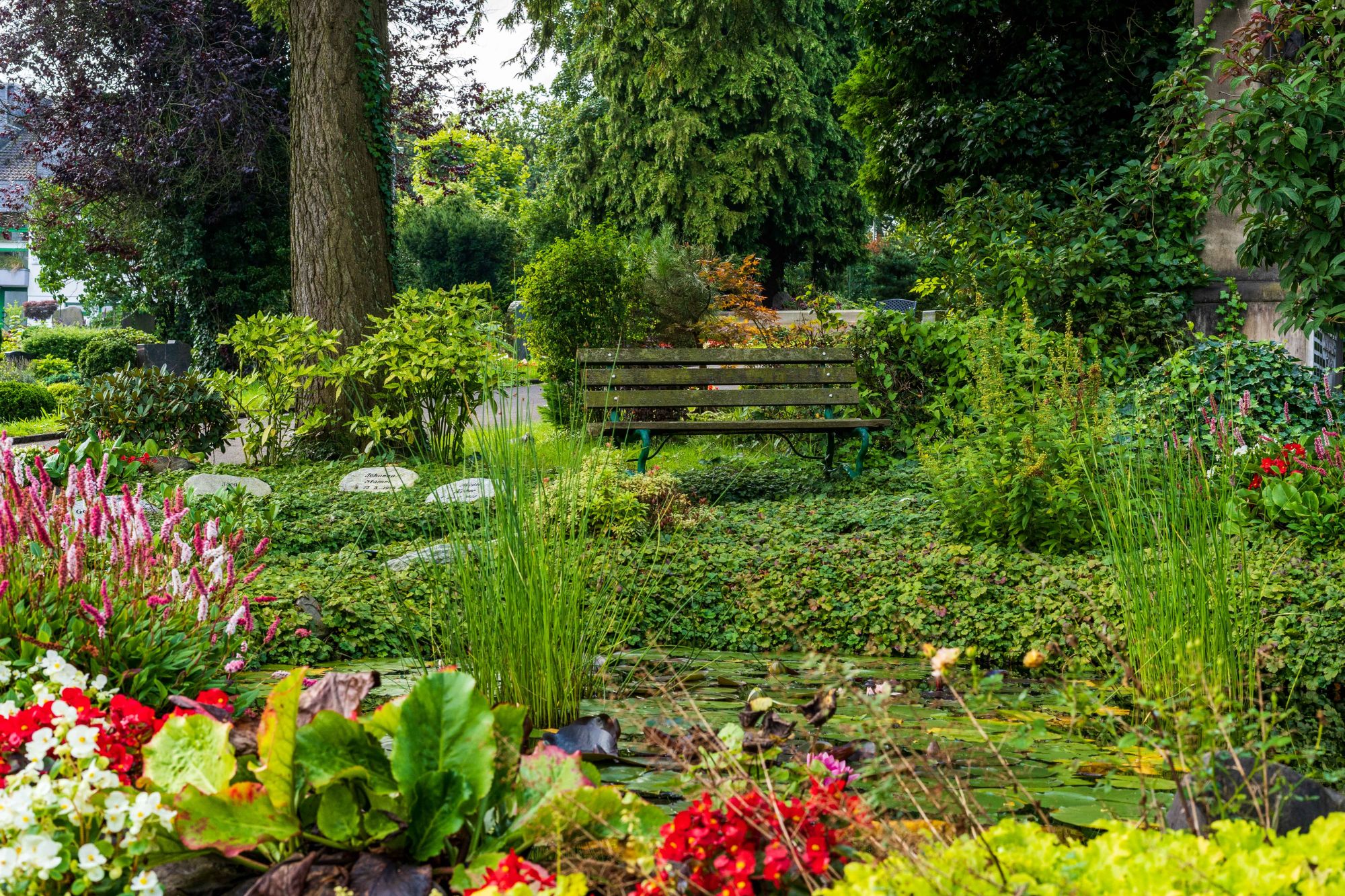 Vom Tag der Beisetzung an sind die Grabstätten im Memoriam-Garten sowie auf dem NaturRuh-Grabfeld fertig bepflanzt. Sie erwerben zu fairen Konditionen einen Ort in einer kompletten Grabanlage mit der dazugehörigen Dauergrabpflege zu einem festen Preis und ohne weitere Folgekosten. Die Gelder der Dauergrabpflege werden von der Rheinischen Treuhandstelle verwaltet, die Arbeit der Friedhofsgärtner wird regelmäßig kontrolliert. Sprechen Sie uns gerne auf weitere Details an.