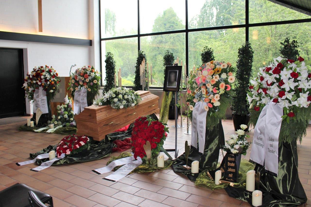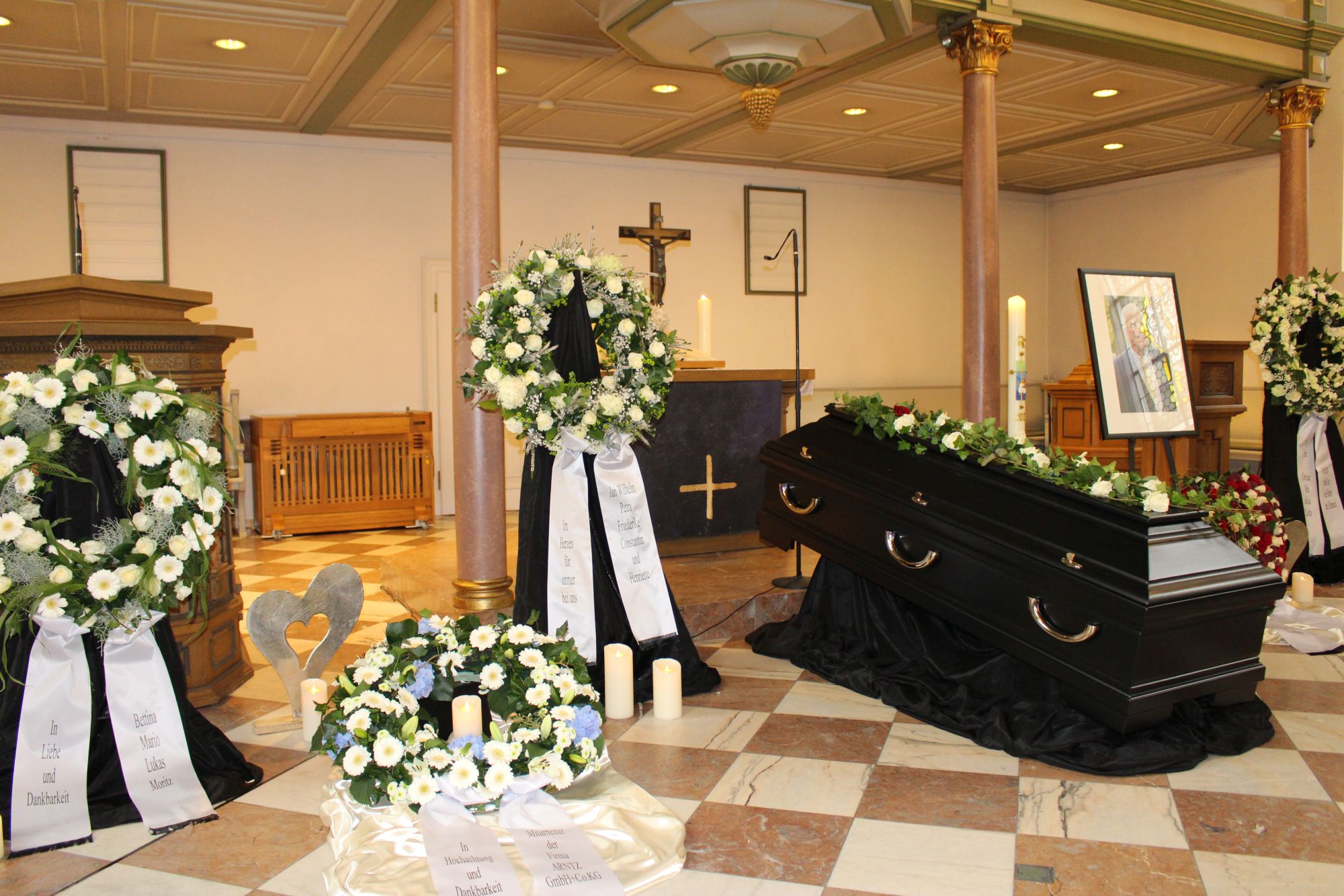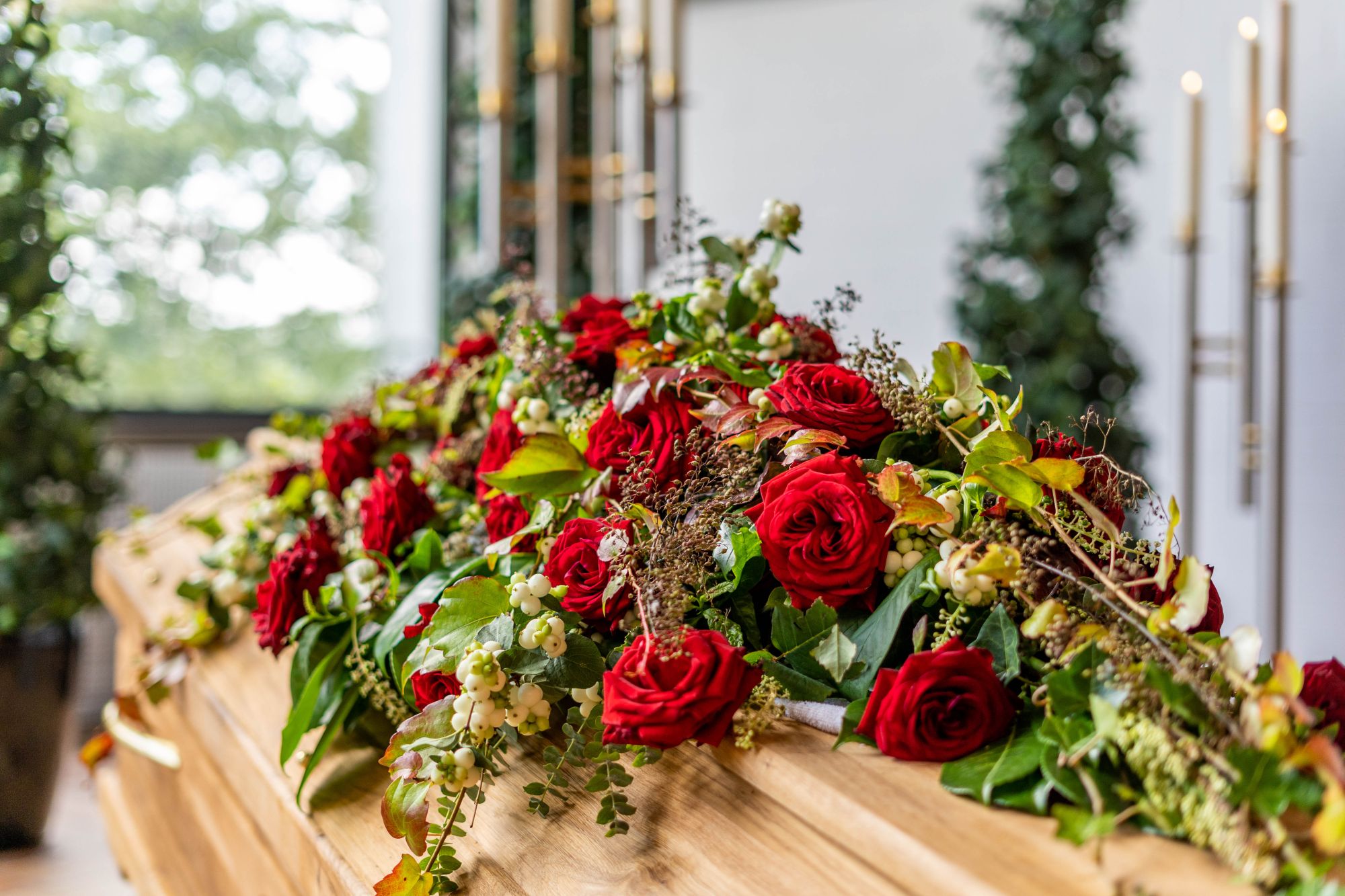 Individuelle und liebevoll arrangierte Dekorationen sind nicht nur Balsam für die Sinne und die Seele – sie können auch die Persönlichkeit eines Menschen nachzeichnen oder gar widerspiegeln. Ob wunderschöne rosafarbene Rosenarrangements, bunte Wiesenblumen, dezente Efeugestecke, edle Buchskränze oder Strohballen mit landwirtschaftlichem Gerät und Kunsthandwerklichem – alles ist möglich. Mit dem Gespür für den jeweiligen Menschen und dem gefühlvollen Händchen für die passenden Details, dekorieren wir nach Ihren Wünschen sowohl Sarg und Urne als auch den Trauerraum, die Kapelle und die Grabstätte – für einen wunderschönen tröstlichen Abschied.