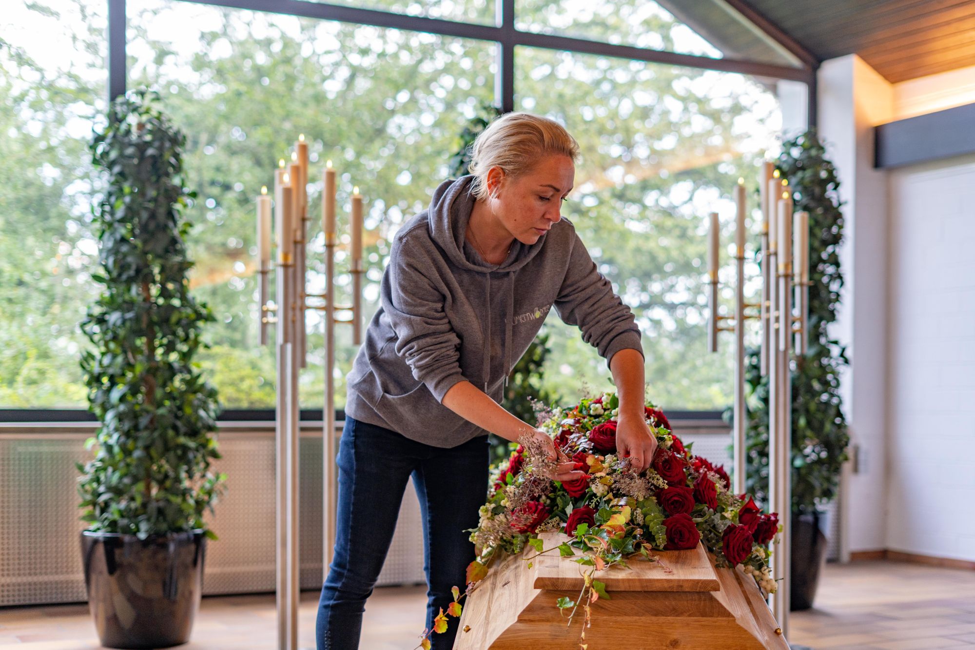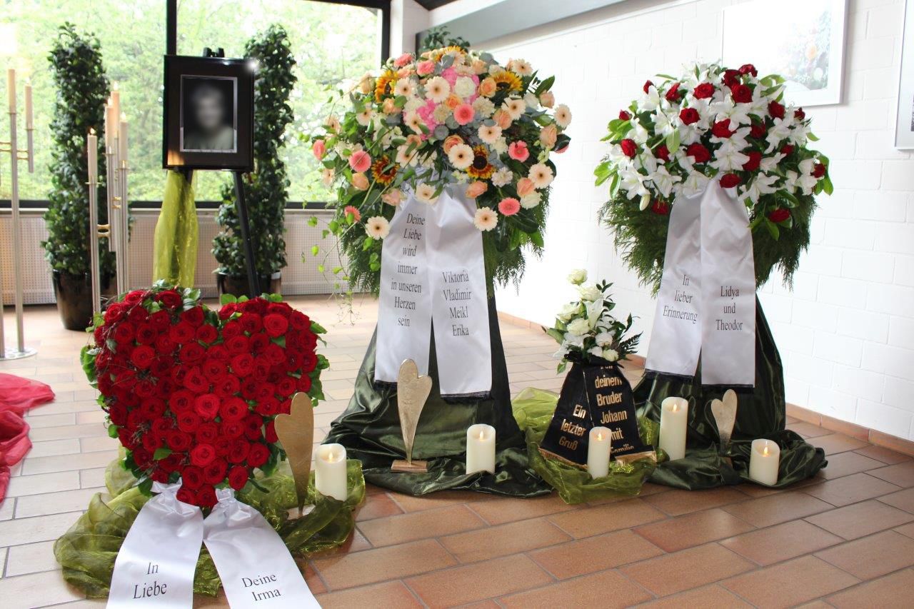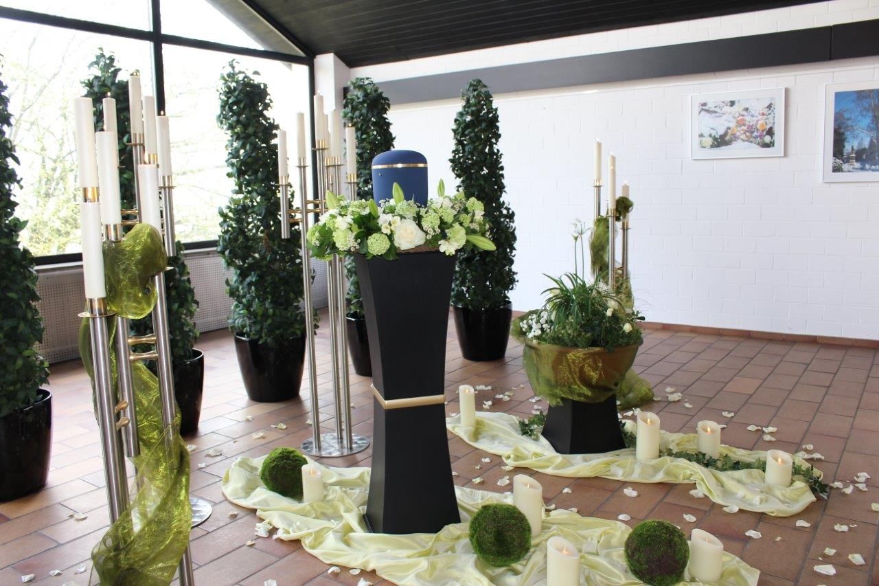 Individuelle und liebevoll arrangierte Dekorationen sind nicht nur Balsam für die Sinne und die Seele – sie können auch die Persönlichkeit eines Menschen nachzeichnen oder gar widerspiegeln. Ob wunderschöne rosafarbene Rosenarrangements, bunte Wiesenblumen, dezente Efeugestecke, edle Buchskränze oder Strohballen mit landwirtschaftlichem Gerät und Kunsthandwerklichem – alles ist möglich. Mit dem Gespür für den jeweiligen Menschen und dem gefühlvollen Händchen für die passenden Details, dekorieren wir nach Ihren Wünschen sowohl Sarg und Urne als auch den Trauerraum, die Kapelle und die Grabstätte – für einen wunderschönen tröstlichen Abschied.